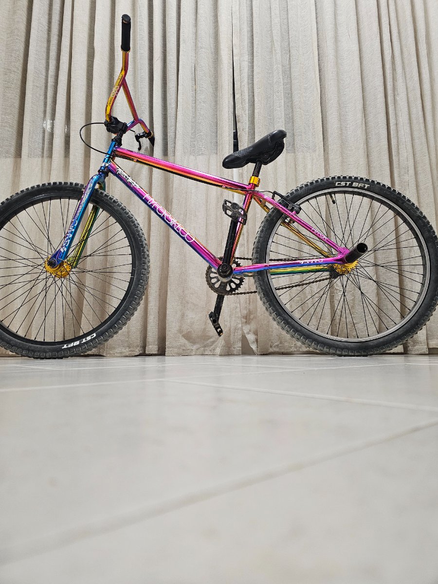 À vendre, ce magnifique vélo de la marque Hyper Bike Co, célèbre pour ses cadres robustes et son style unique. Ce modèle se distingue par sa finition "Jet Fuel" (chrome arc-en-ciel) qui change de couleur selon la lumière, garantissant un look incroyable sur le terrain ou en ville. C’est un vélo polyvalent, idéal pour le pump track, le dirt ou simplement pour cruiser avec style. PRIX NIGOCIABLE PARLER PAS 🇨🇳