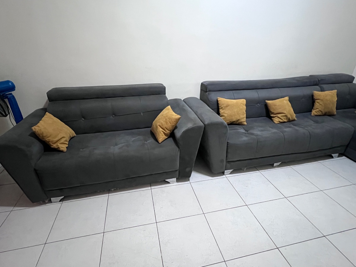 Salon sept places à vider Un des pieds d’un des fauteuils est cassé. Mais l’ensemble est bon