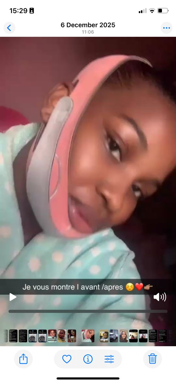 il s agit de bande anti double menton qui aide a eviter ou enlever le double menton affine l ovule de votre visage et vous rajeunit de maniere tres natuelle LIVRAISON GRATUITE PARTOUT A DAKAR STOCK TRES LIMITE( 4 PIECES RESTANT ) existe en couleur vert et rose