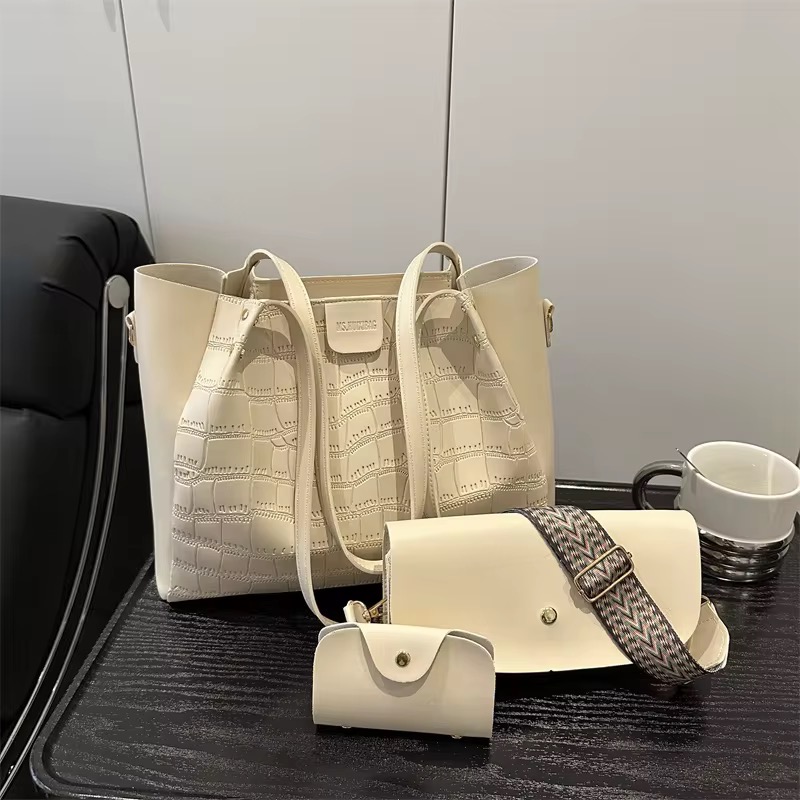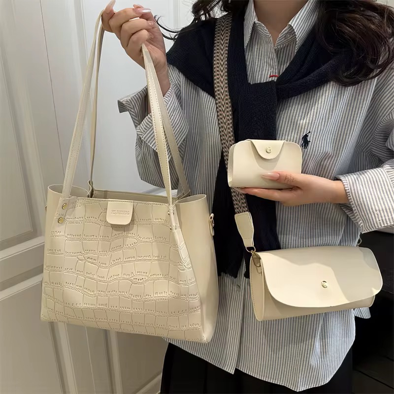 Ensemble Sac Fourre-tout Grande Capacité Vintage 2025 Élégant et Tendance Trois Pièces pour Femme, Fermeture Éclair, Porté Épaule ou Croisé, Idéal pour les Trajets