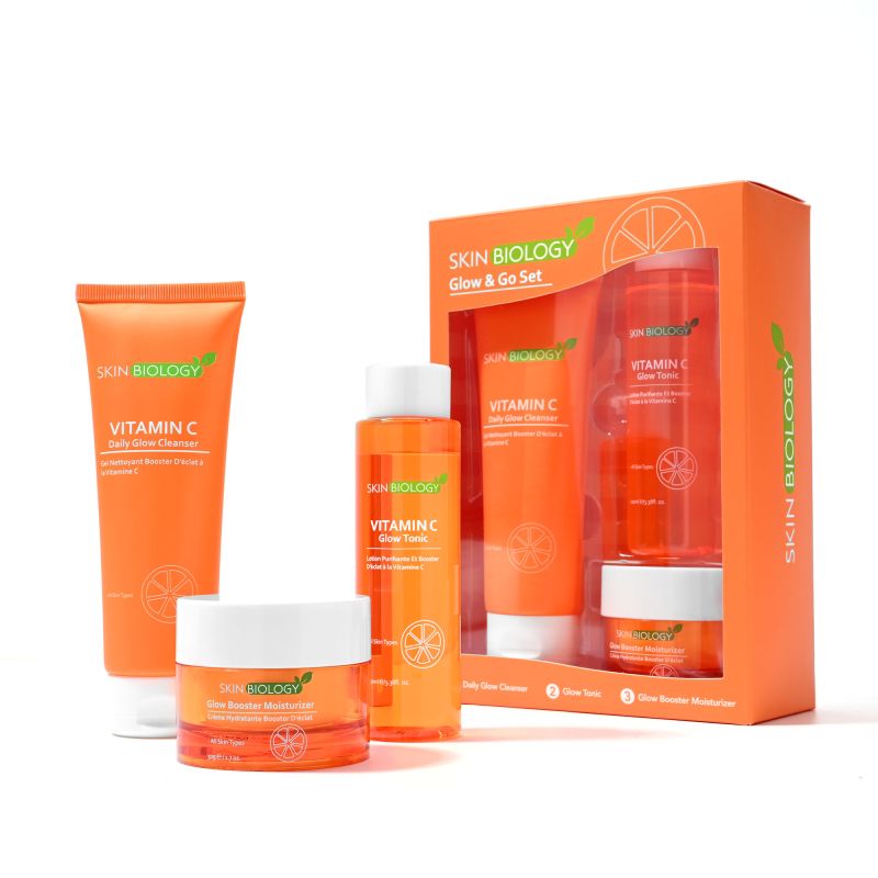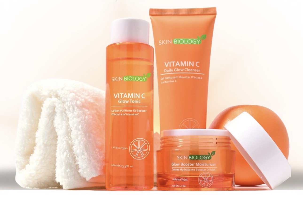 Gamme de visage de la marque skinbiology composé d’un gel nettoyant, d’une lotion purifiante et d’un crème de visage