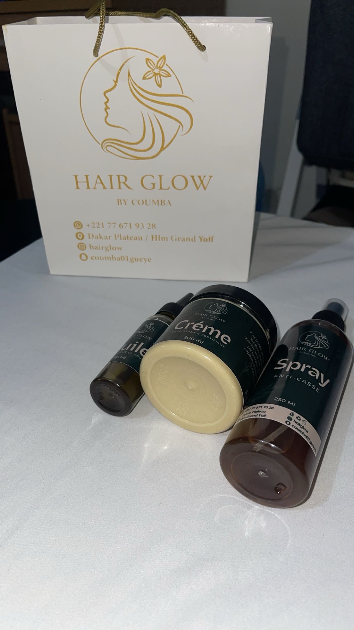 ✨ HAIRGLOW ✨ Offrez à vos cheveux le soin qu’ils méritent 💆🏾♀️🌿 Découvrez notre soin complet HairGlow : ✔ Hydratation intense ✔ Anti-casse ✔ Brillance incroyable 📍 Disponible sur le +221 77 671 93 28