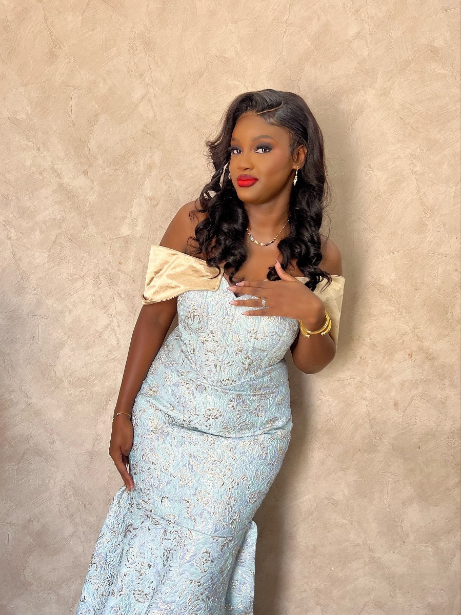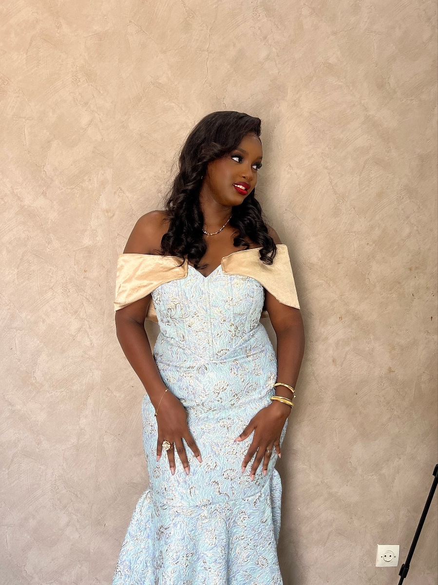 Il s’agit d’une robe corset au niveau de la taille, soutenue avec des lacets au niveau du dos. Elle est surtout cousue avec du brocard et de la soie de haute qualité.