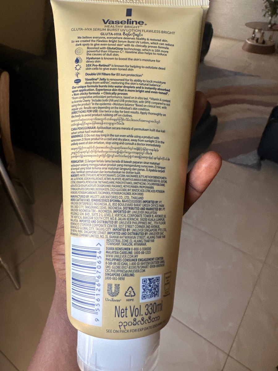 Vaseline gluta hya venant de Thaïlande