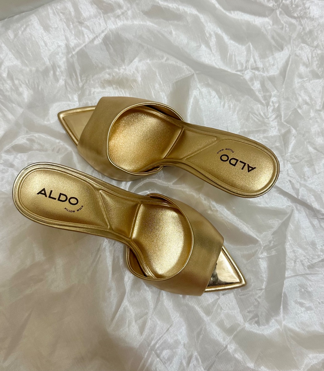 Je vends une paire de sandales à talons de la marque ALDO. • État : neuf, jamais porté • Couleur : doré brillant • Modèle : sandales ouvertes avec talon fin • Très élégantes, parfaites pour soirée, mariage ou événements Achetées à 95$ (environ 55 000 FCFA) Je les vends car c’était un cadeau et la pointure/style ne me convient pas.