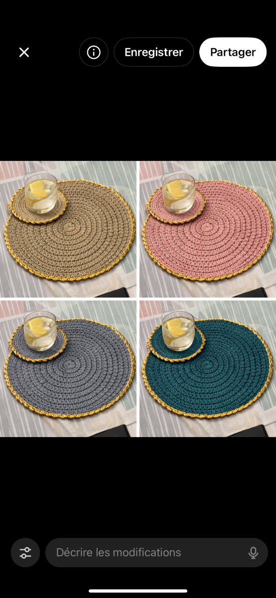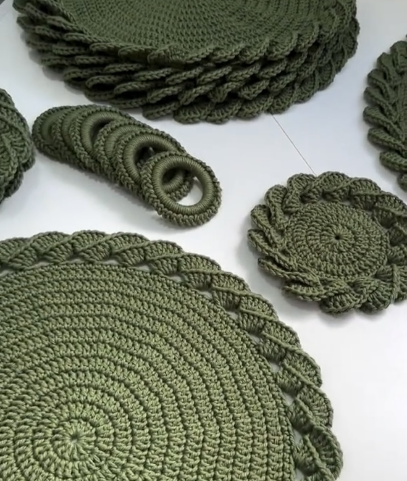 Set de table fait main au crochet Matière naturelle, élégant et durable. Chaque pièce est réalisée avec soin. Disponible sur commande ou avec vos propres models . Aussi avec sous-verre assorti.🙏🏾
