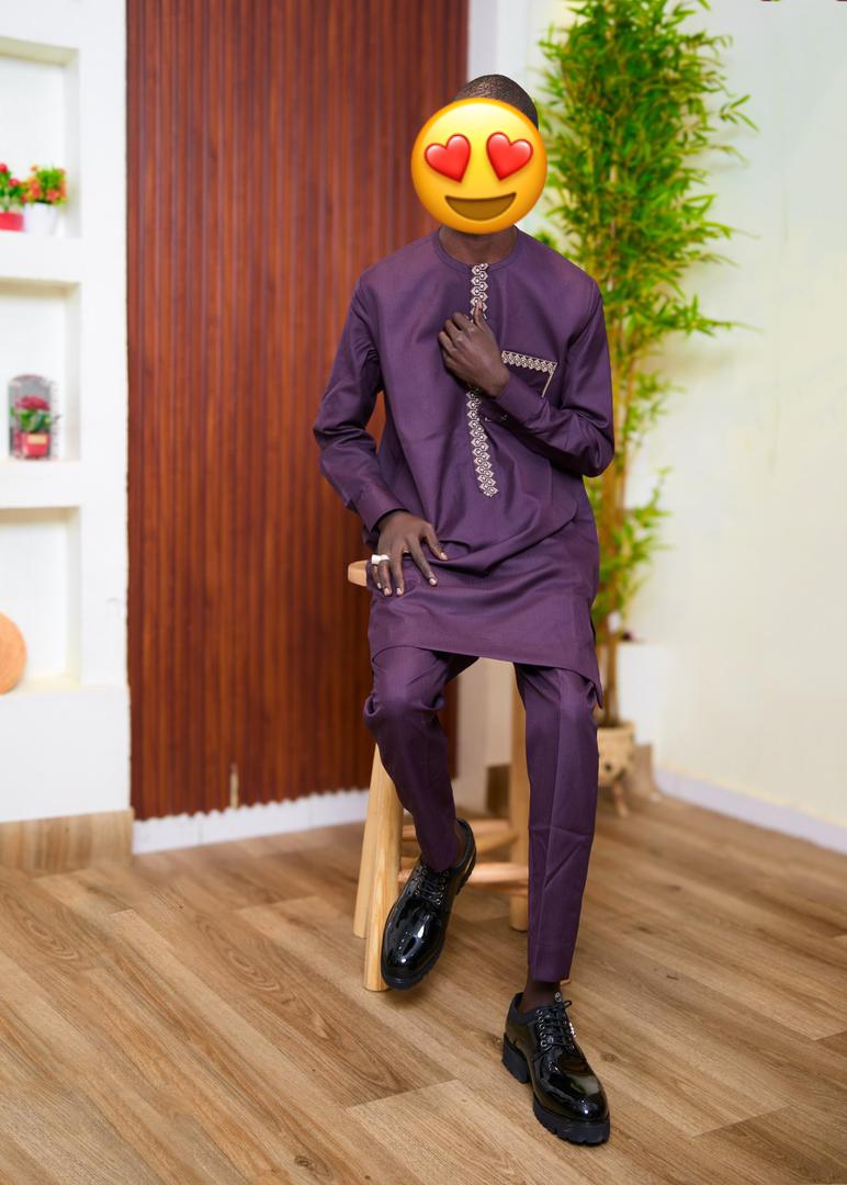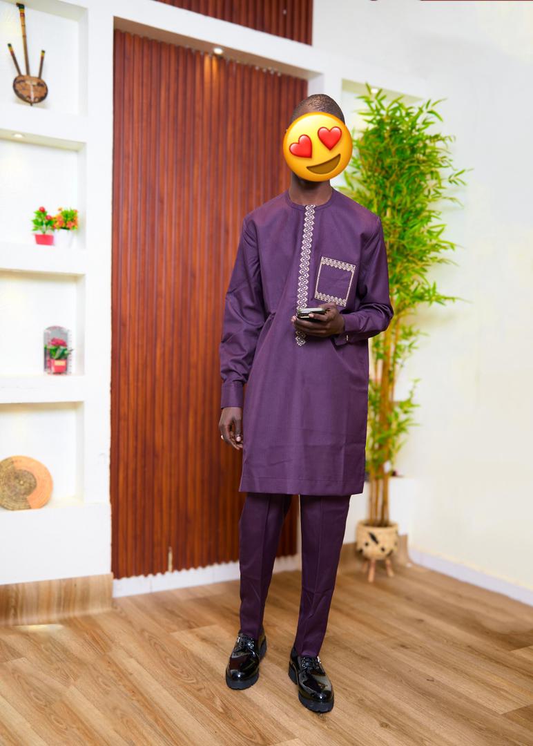 Magnifique ensemble homme de couleur violet foncé avec broderie travaillée. Très stylé et original, idéal pour se démarquer lors des événements. Confortable et bien taillé. ✔️ État : neuf ✔️ Taille : L/XL ✔️ Tissu : qualité supérieure