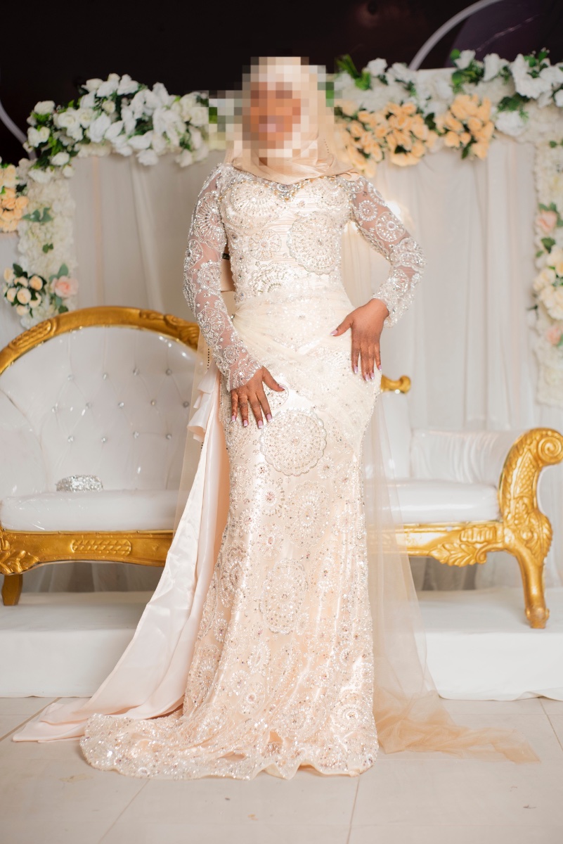 Robe de mariage beige Portée une seule fois pour quelques heures . Cousu par pape beye