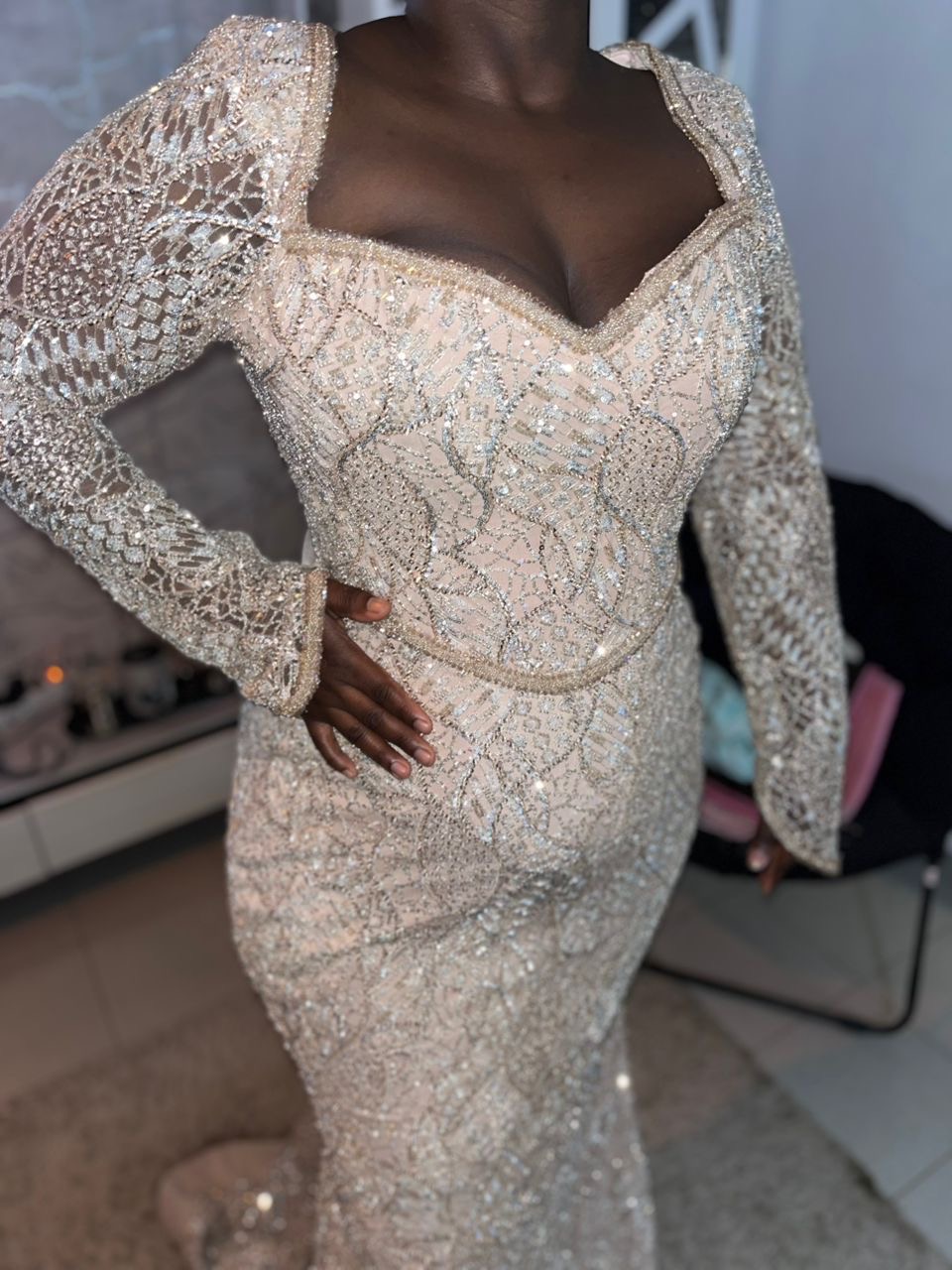 Tenue élégante signée Malick Couture ✨ Portée une seule fois Tissu : 150.000 FCFA Couture : 150.000 FCFA Une pièce chic et raffinée qui fait toute la différence 💫 Je la cède à seulement 100.000 FCFA Opportunité à ne pas rater 🤍